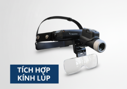– Đèn có thể kết nối với bộ kính lúp (mua thêm) dùng để khuyết đại mục tiêu nhìn
