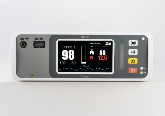 Máy đo SpO2 để bàn model: BT-720 là dòng máy đo chỉ số SpO2 (độ bão hòa ô xy trong máu) nhỏ gọn để bàn. Cho kết quả nhanh và chính xác. Đặc biệt có màn hình hiển thị bằng cảm ứng và đo cả chỉ số tưới máu. Nếu cần có thể nâng cấp để đo thêm thông số NIBP (Huyết áp không xâm lấn), và thông số nhiệt độ da (Temp)